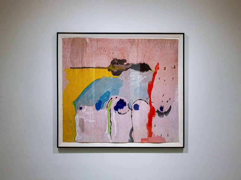 In 1995, Helen Frankenthaler made six paintings that served as the basis for the Tales of Genji series. Using her signature "soak-stain" method, Frankenthaler poured diluted acrylic paint onto sheets of plywood, and exploited the wood's natural absorbency to create richly layered compositions.
